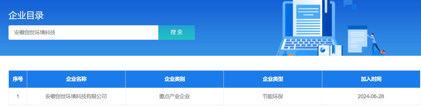 安徽創(chuàng)世環(huán)境科技有限公司成功入庫合肥市2024年重點產(chǎn)業(yè)鏈名錄企業(yè)。" /> 安徽創(chuàng)世環(huán)境科技有限公司成功入庫合肥市2024年重點產(chǎn)業(yè)鏈名錄企業(yè)。" />